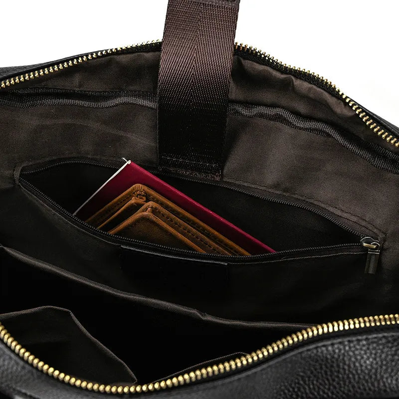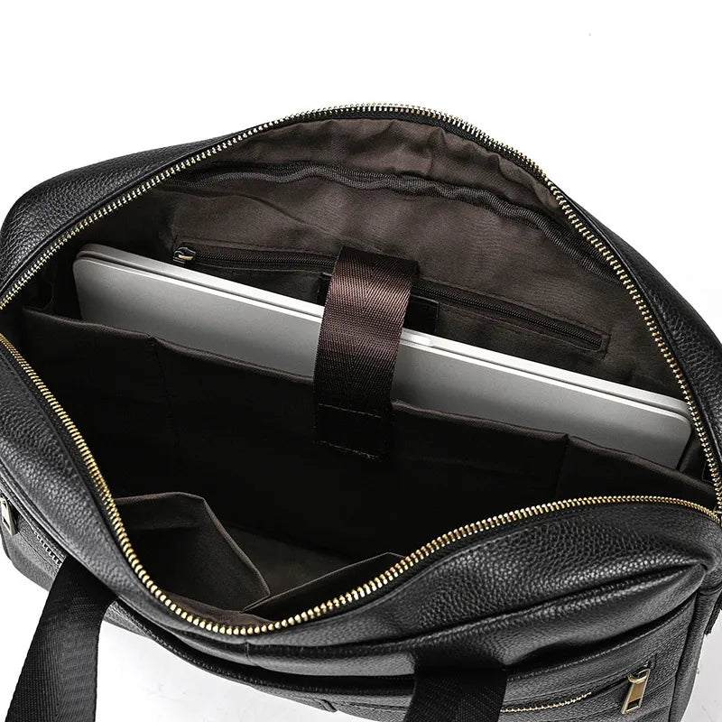 Versátil e sofisticada como os seus dias: conheça a Pasta Executiva Barcelona! Ideal para uso diário no trabalho ou reuniões de negócios, esta pasta para notebook masculina foi desenvolvida em couro legítimo de alta qualidade, apresentando estrutura resistente e acabamento premium que a fazem durar uma vida inteira. Seu design minimalista com múltiplas divisões internas oferece ótimo espaço para carregar tanto seu notebook como também documentos, livros, garrafa d’água, carregador e vários outros itens. A pasta possui ainda alça tiracolo de couro ajustável e removível e alça de mão em couro fixa.