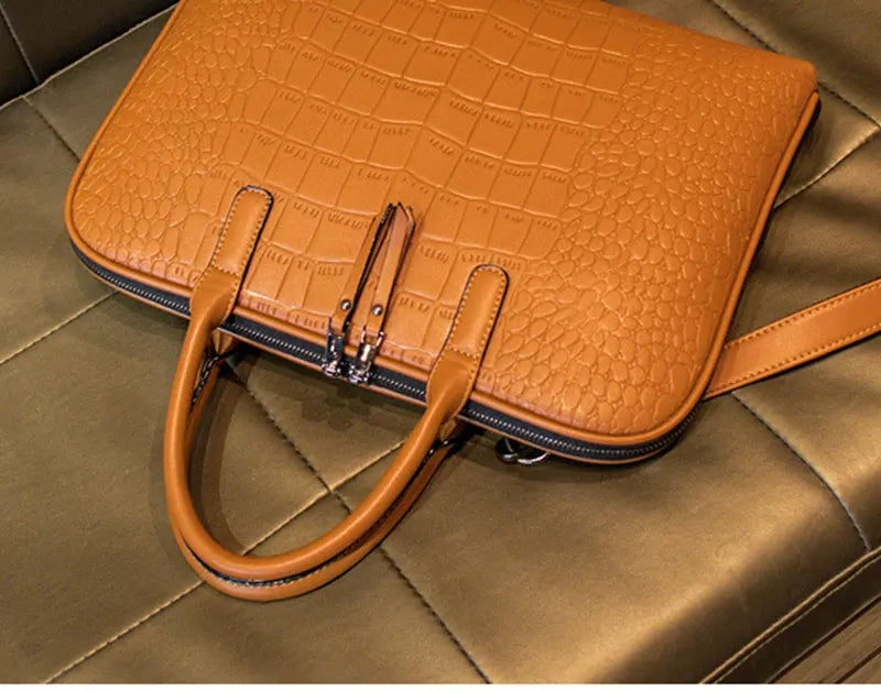 Descubra a expressão máxima de elegância com a nossa Pasta Executiva Feminina em Couro com Textura Croco.