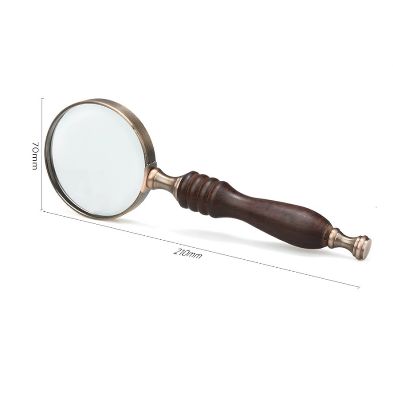 Inspirada nas ferramentas clássicas dos grandes exploradores e intelectuais, a Lupa Magnus combina funcionalidade e requinte. Feita com estrutura em latão envelhecido e cabo torneado em madeira maciça, ela carrega o charme das antiguidades e a precisão de um acessório feito para durar.