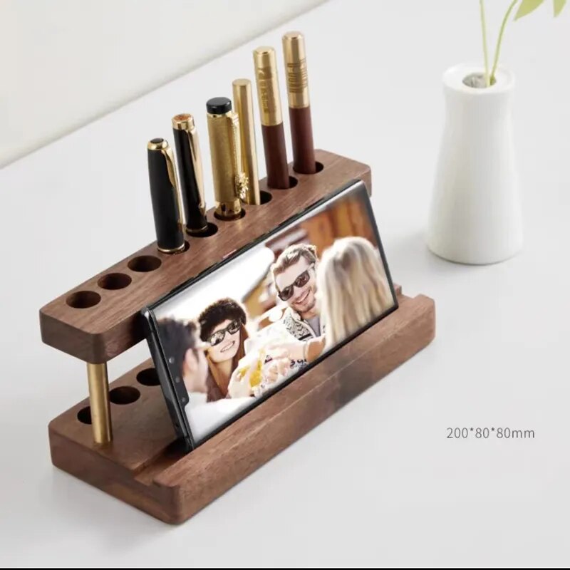 Seja para o seu próprio espaço de trabalho ou como um presente para alguém que aprecia o bom gosto, não deixe escapar esta oportunidade. Adquira já o nosso porta-canetas em madeira nobre com suporte para celular - a expressão definitiva de elegância e funcionalidade.