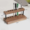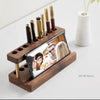 Eleve o luxo e a organização na sua mesa de trabalho com o nosso porta-canetas em madeira nobre, que oferece múltiplos compartimentos para canetas e até mesmo um suporte elegante para o seu celular.