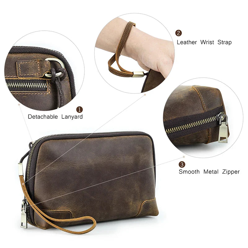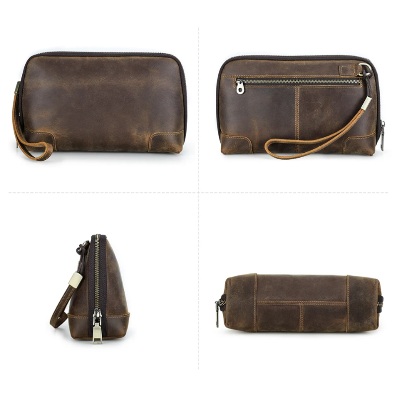 Fecho em zíper metálico resistente, forro em lona reforçada e alça de pulso para transporte seguro. Ideal para a rotina de trabalho, viagens ou o dia a dia urbano.