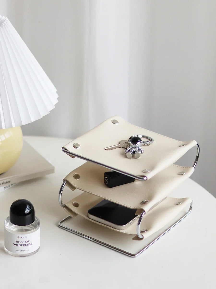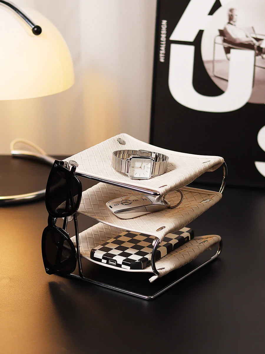 Pensado para aqueles que exigem o máximo de elegância e funcionalidade, este acessório é a solução definitiva para manter seu escritório impecável e estiloso. Com três níveis cuidadosamente desenhados, você terá espaço de sobra para organizar seus objetos essenciais, desde canetas e clipes até notas e cartões.